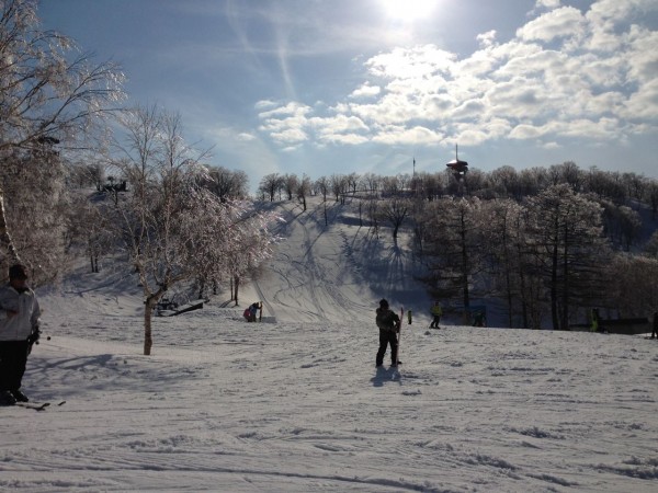 Perfect clear blue skies in Nozawa this morning after what was a fairly chilly night.