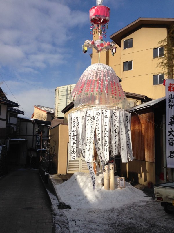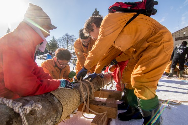With the Fire Festival taking place tonight, excitement around Nozawa Onsen has reached a boiling point. The men will be finishing the construction of the shrine by lunch, in time for the festivities to kick off at 7pm.