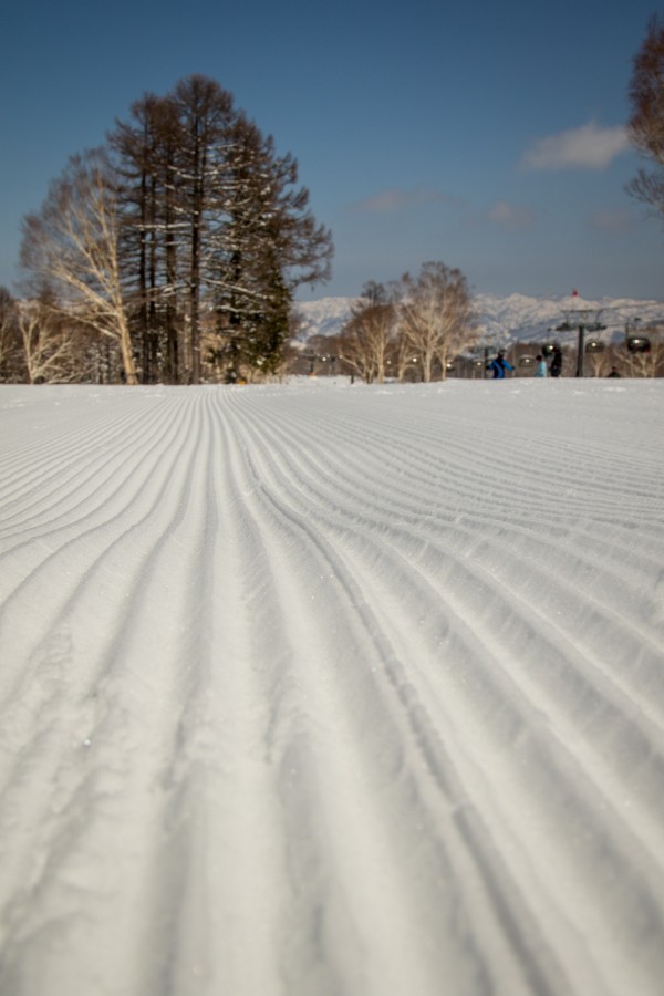 It’s going to be another beautiful day of sunshine and t-shirt weather in Nozawa Onsen today. The sun is shining, the pistes are groomed, the park is back open and the weekend crowds have departed!