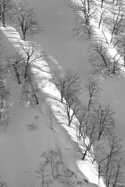 We have another clear bluebird day in Nozawa Onsen this morning. Visibility above 1400 meters is outstanding, but a strong inversion layer has trapped haze in the valleys limiting long range views. Overnight snowfalls did not eventuate, with only a dusting received on the upper slopes.