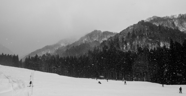 Yesterday was unusually stormy. There was thunder and lightning in the early hours with heavy snowfall throughout the day. The snow wasn’t our usual fluffy Japanese powder, though once the strong winds ceased, the snow continued to dump in its typical light, fluffy form. We’re now sitting on a base of 125cm, with 30cm of fresh in the past 24 hours. The mountain was closed above Uenotaira Station due to winds being too high, so everything up the top will be untouched for us today!